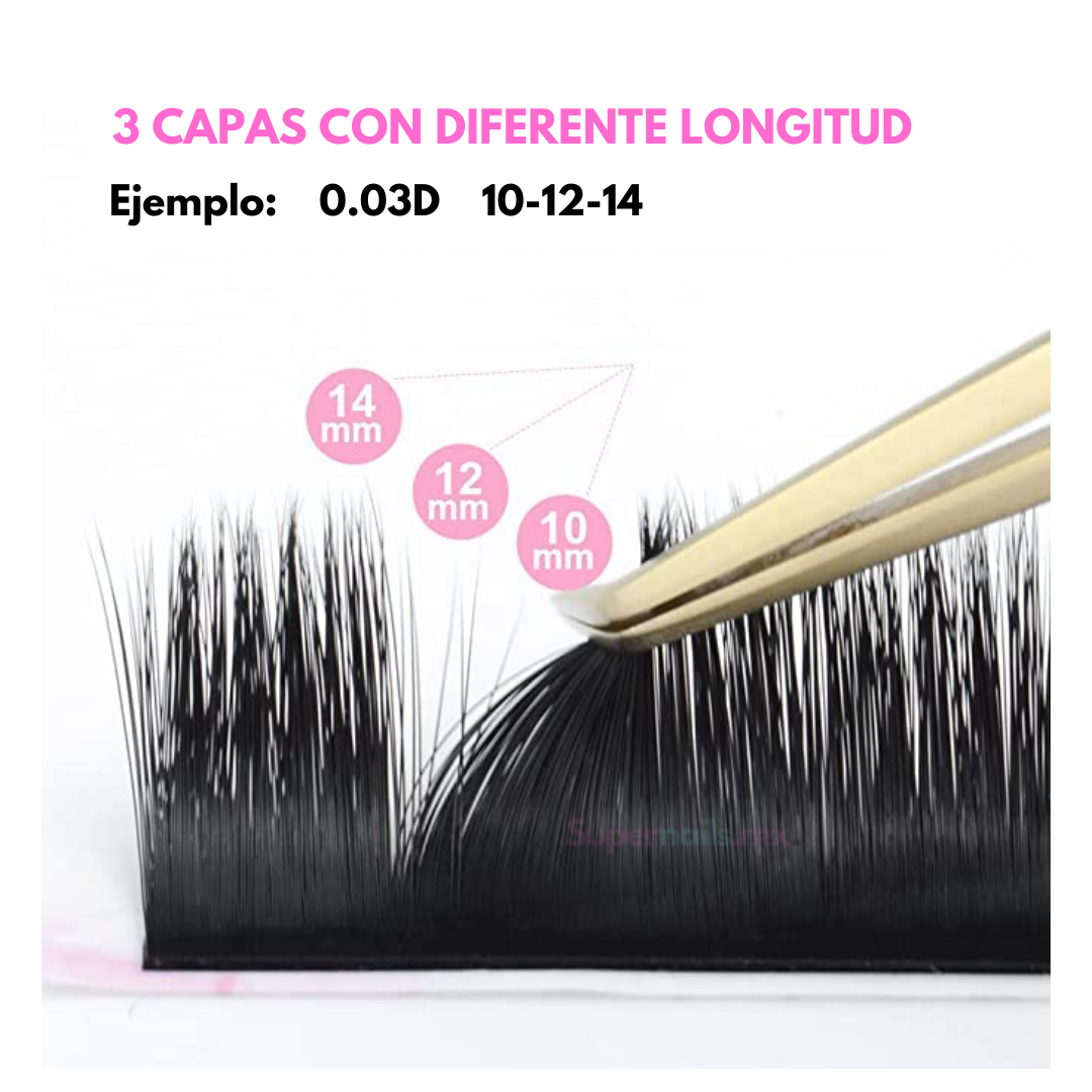 * Longitud de 3 capas: tiene 3 longitudes diferentes en 1 fila, haciendo grupos de longitud de mezcla y dando un efecto esponjoso.