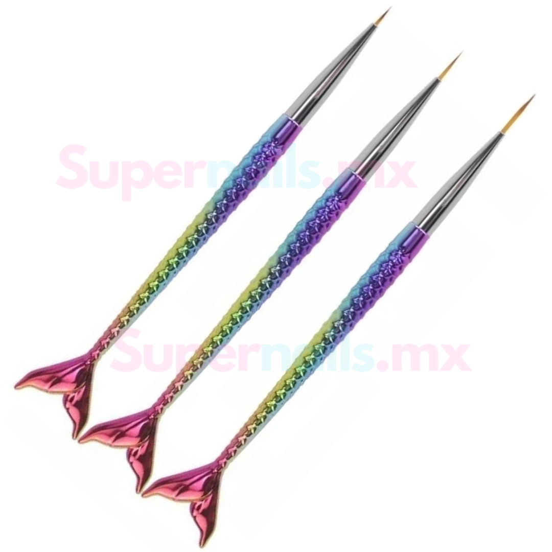 Pincel Liner Fino Para Mano Alzada Uñas Kit con 3 piezas Cola de Siren