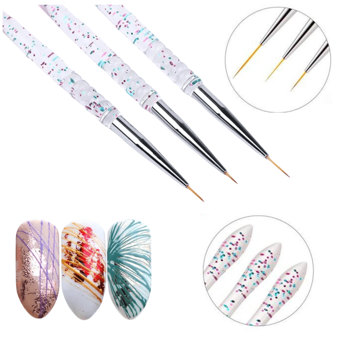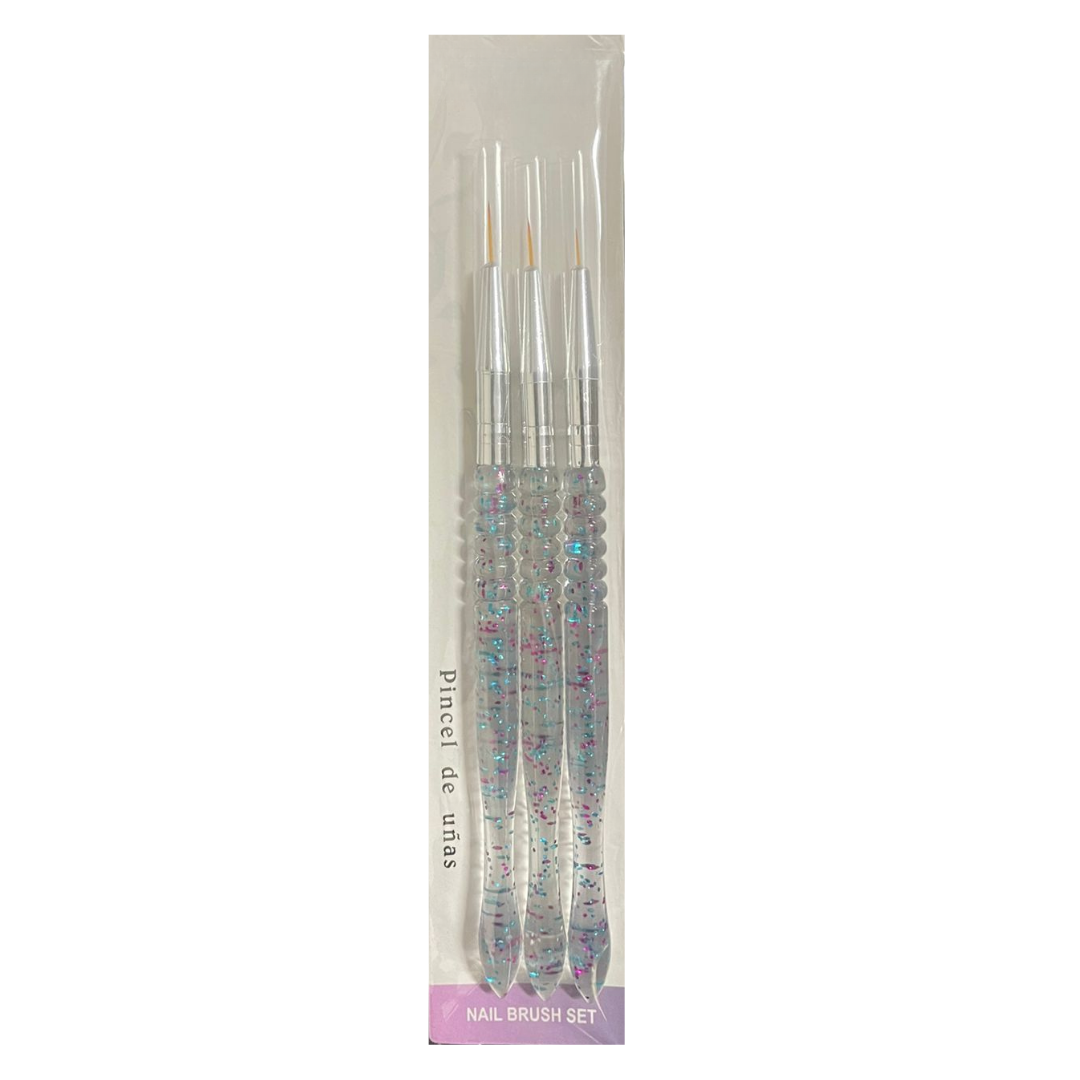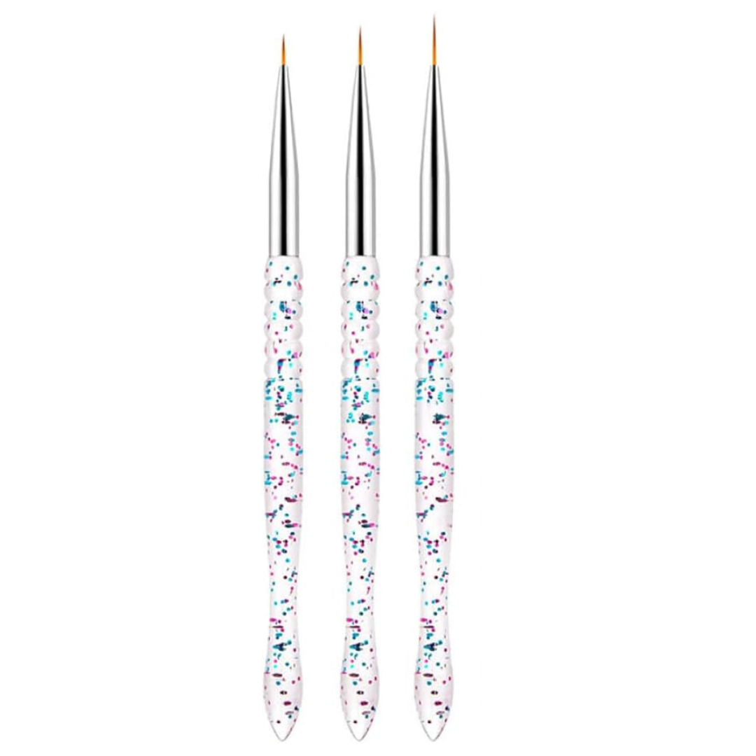 Pincel Liner Fino Para Mano Alzada Uñas Kit con 3 piezas Glitter