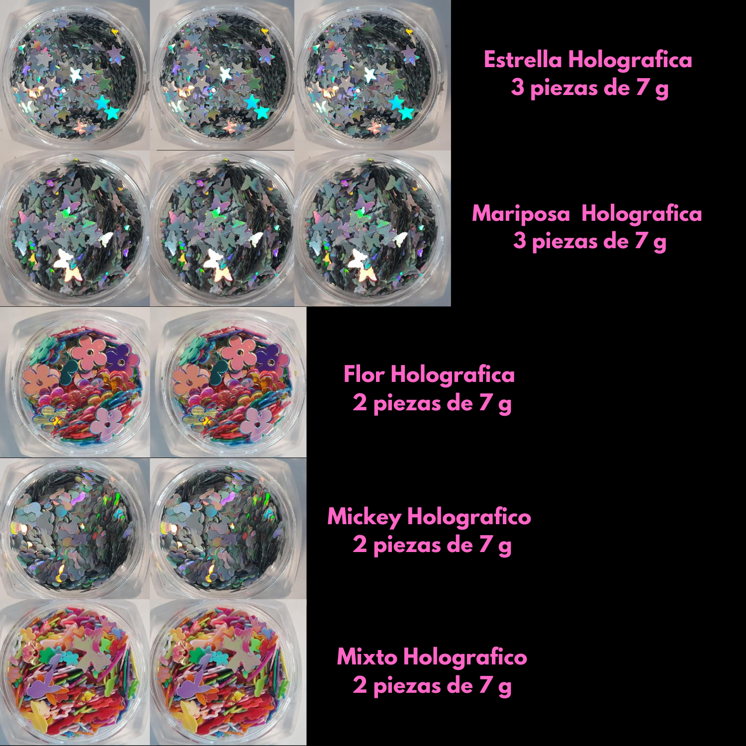 Decoración Acetato Glitter Holográfico con 12 Estilos