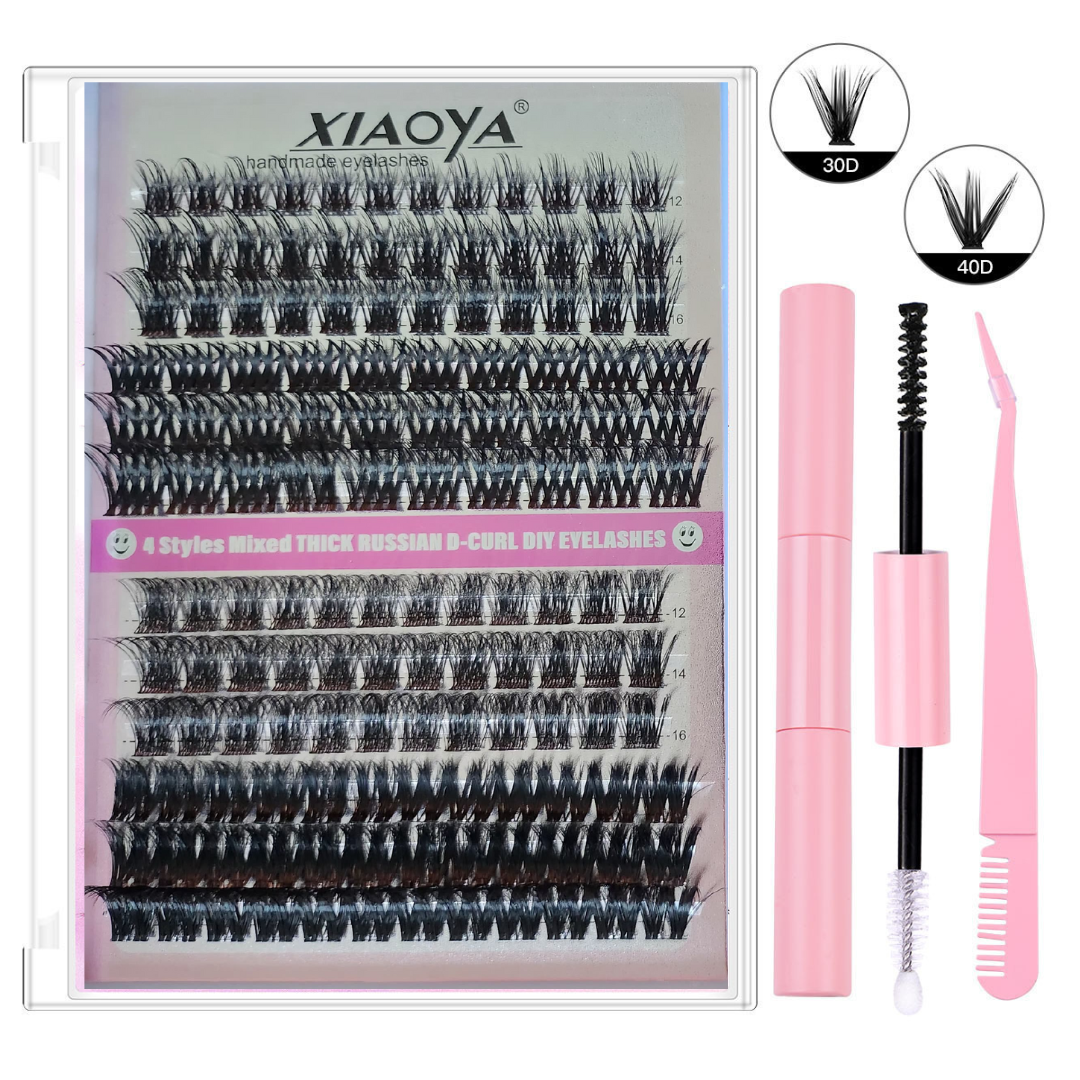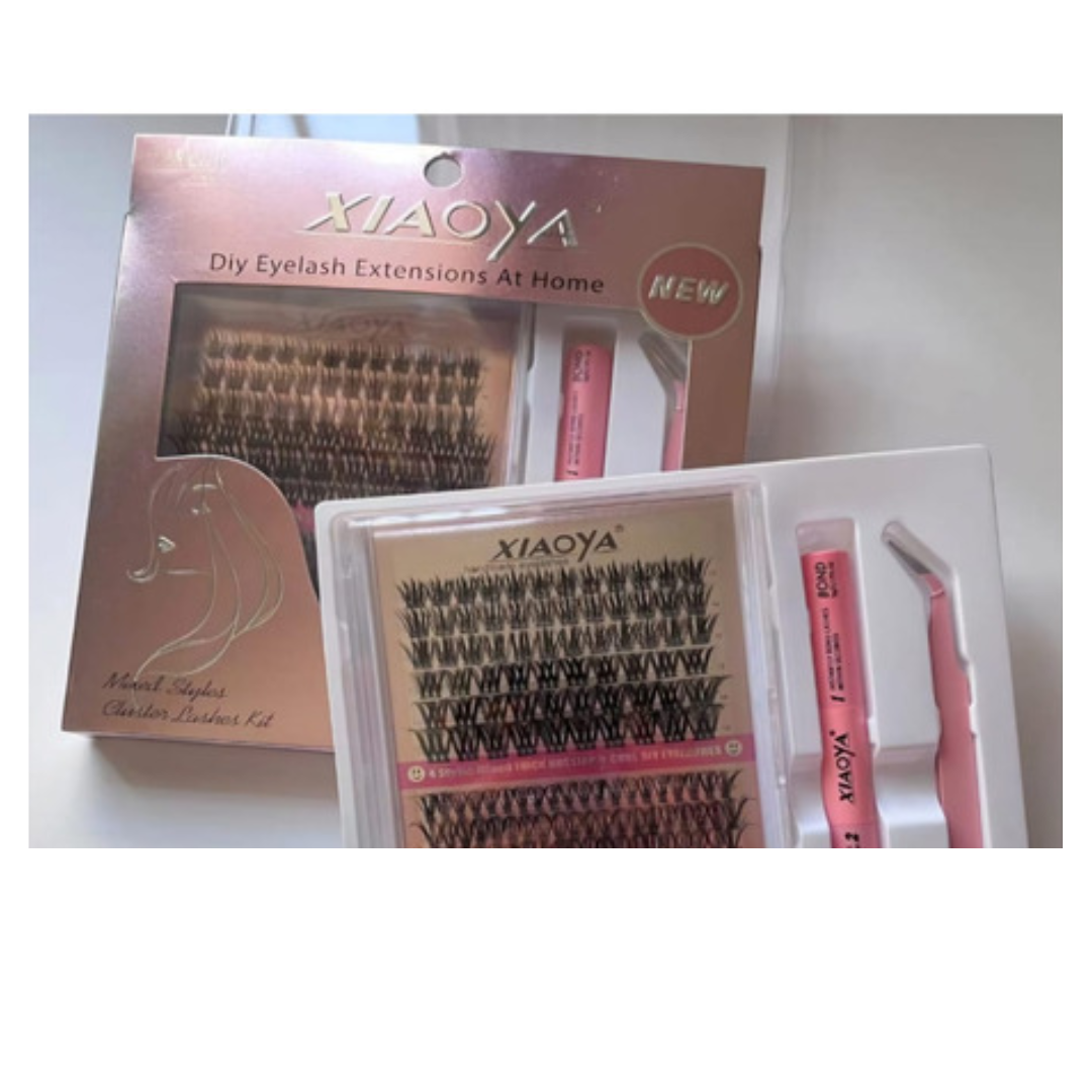 KIT PESTAÑAS XIAOYA ROSA CON PINZAS Y BOND Modelo 705